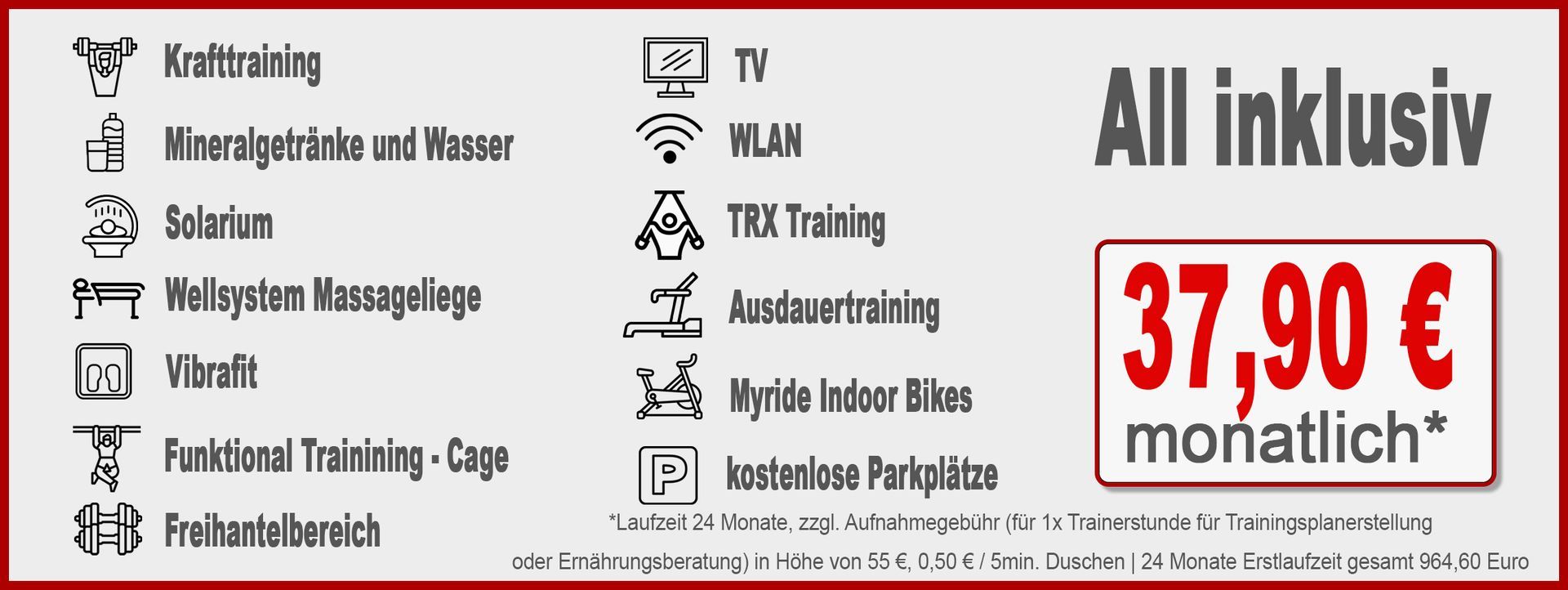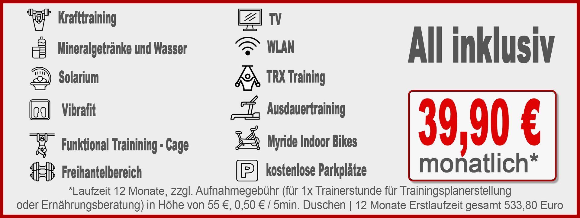 individuellen Trainingsplan (Reha, Split…) von unserem Fachpersonal, dann bieten wir dir diesen für 59.90 Euro an.